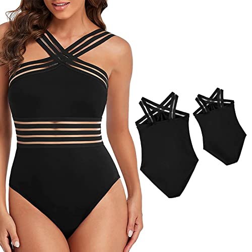 Title: IFFEI Mommy and Me Swimsuits Girl’s One Piece Swimwear Front Crossover Swimwear Hollow Bathing Suits Monokinis 2T Black