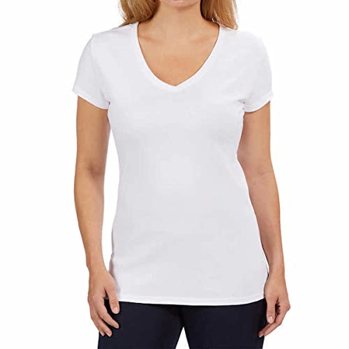 9. Kirkland Signature Women’s V-Neck Short Sleeve Peruvian Pima Cotton T-Shirt (Medium, White)