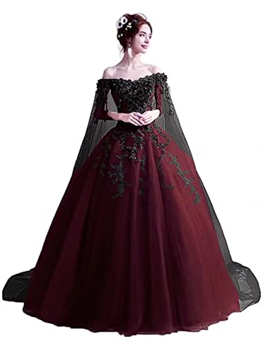 7. Women’s Off The Shoulder Masquerade Puffy Prom Dress Long Ball Gowns Quinceanera Gothic Dress Sweet 16 Burgundy