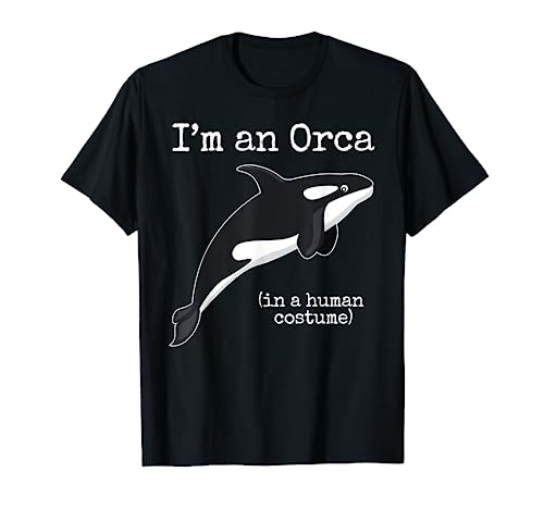 Unleash the humor with the “I’m an Orca in a Human Costume” T-Shirt! This funny, cartoon graphic tee is an easy and adorable killer whale Halloween costume.