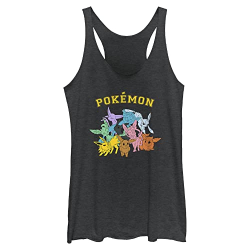 5. Pokemon Gotta Catch Eeveelutions Women’s Racerback Tank Top, Black Heather, Medium